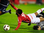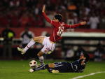 Chance de Oscar Logo após o gol do Independiente, Oscar, herói da seleção sub-20 e tratado como solução colorada, teve em seus pés a chance de devolver a vantagem de dois gols de diferença para o Inter. Mas o meia demorou demais e permitiu a chegada cirúrgica de Julián Velázquez (foto), que fez grande desarme. A tensão persistiria até os 36 minutos.